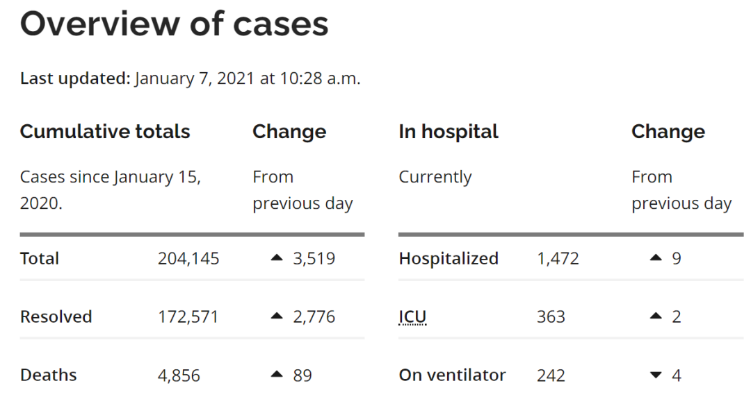 据CBC报道,安大略省大约在两周前进入了“封城”状态,但安省政府称,关键公共卫生指标却依旧在恶化,医疗资源也即将消耗殆尽。1月7日,安大略省通报了该省史上最高的新增病例和新增死亡人数——在过去的24小时新增3519例感染、死亡89人。