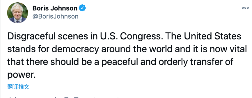 拜登说:“这不是抗议,是暴动。”他呼吁特朗普走上电视,“要求结束这场围攻”。拜登说:“这一切已经足够了。”