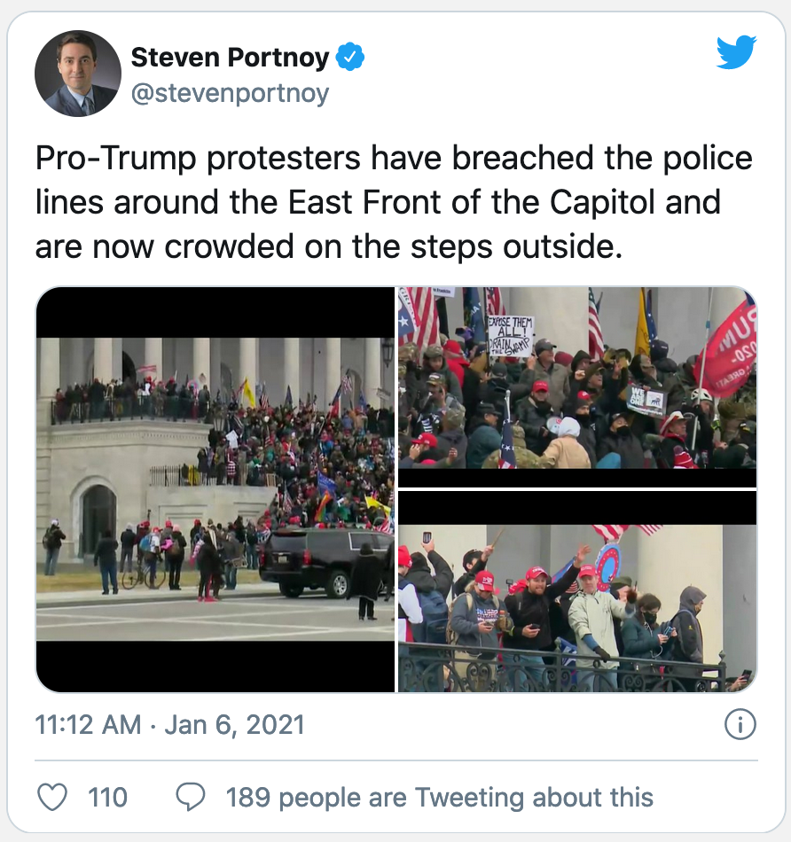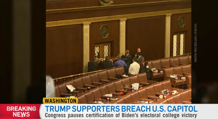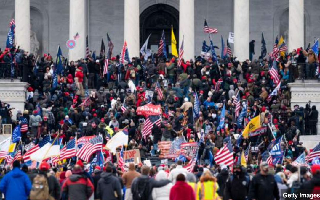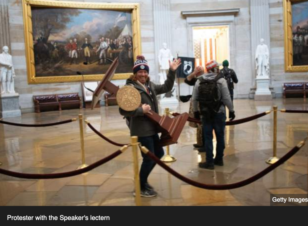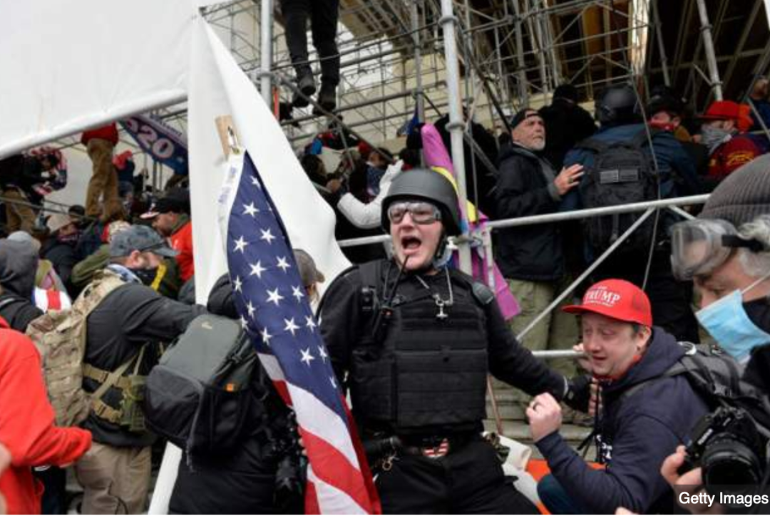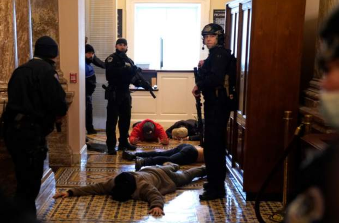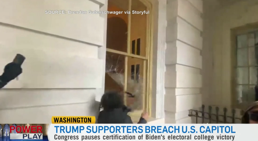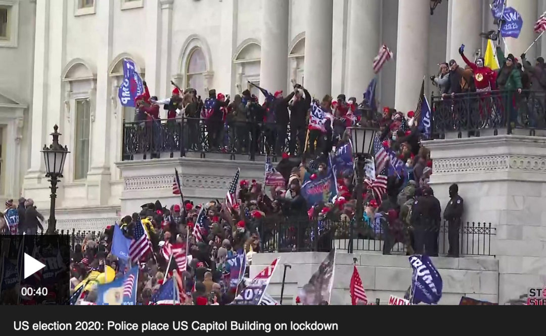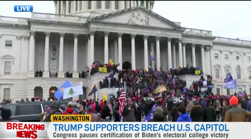 示威者蜂拥至国会大厦,抗议2020年选举结果,并打破了此前设置的临时障碍。一些抗议者试图攀爬国会大厦,进入大厦内部。