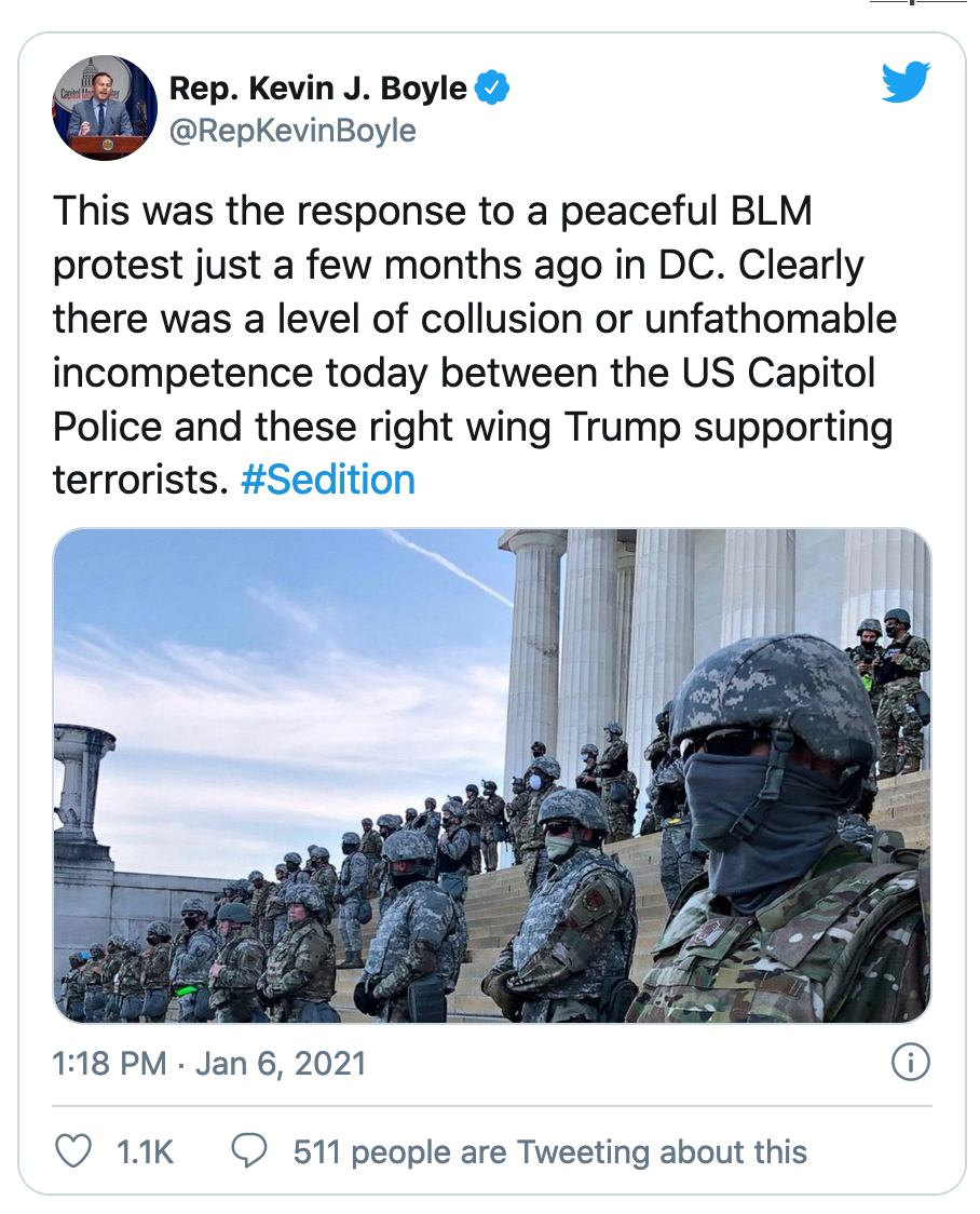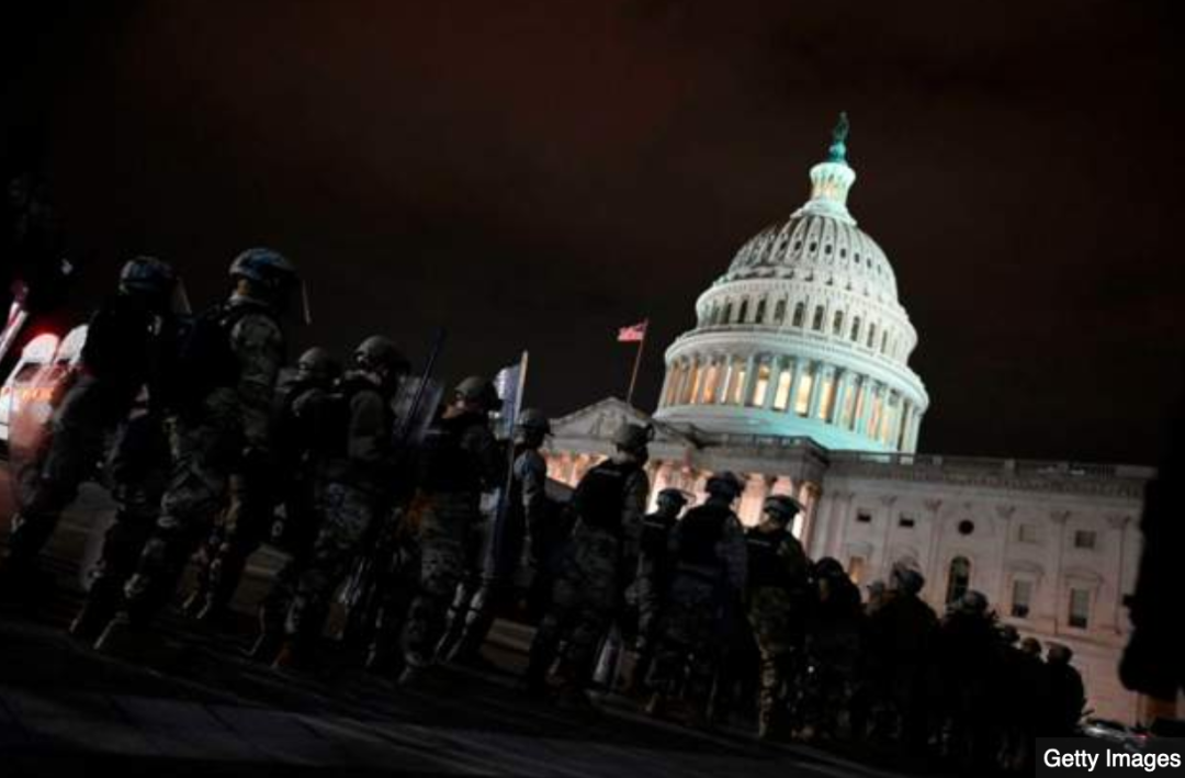 来自华盛顿特区的国民警卫队已经部署到位,人群开始在国会大厦附近散去。
