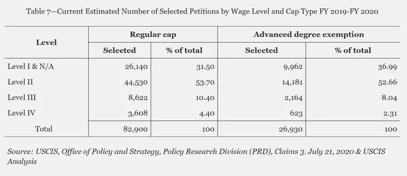 - 第三步:如果Level IV和Level III 申请人全部领取H1B后,仍有名额剩余,则在工资Level II申请人中抽签决定