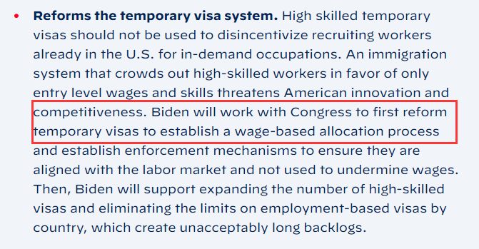 第三种可能:根据拜登网站公布的移民政策,拜登支持基于工资级别高低的分配签证方案,因此不排除修改部分细则后,继续执行。