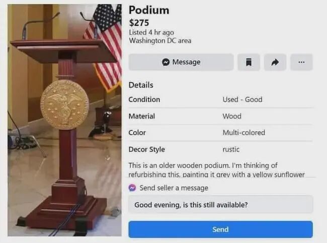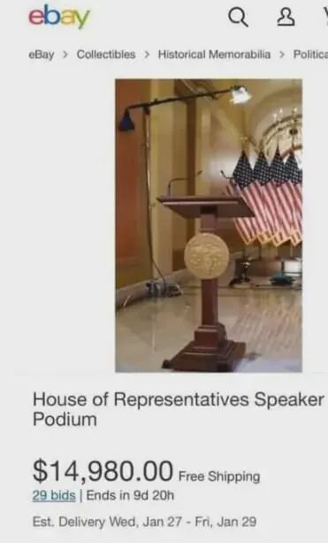 而将这股热潮推到极致的是全球知名拍卖网站eBay,有人发现佩洛西的讲台被堂而皇之地挂到了拍卖界面。