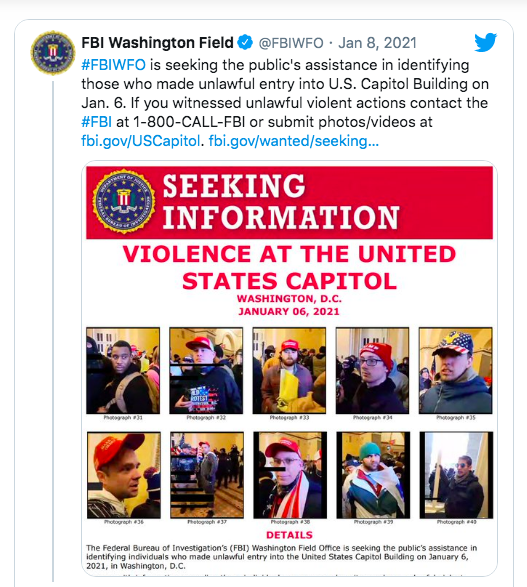 1月7日,美国司法部负责华盛顿特区的代理检察官迈克尔·舍温(Michael Sherwin)曾表示:“我们正在调查所有参与暴乱行动的人,如果证据符合,他们将受到起诉。”