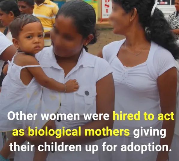 他们的亲生母亲有可能还是未婚少女,在斯里兰卡一些农村女性若不小心婚前怀孕,往往在“有辱家门”的担忧下从自己的村子里逃走,之后便成了不正规的领养机构的目标。后者专门到贫民窟、火车站和私人小医院寻找这样的女性,威逼利诱加劝说让她们在日后的收养文件上签字。
