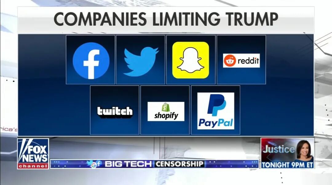 至此,美国最大的五个科技企业,Amazon,Google,Apple,Facebook,Twitter全部将特朗普拒之门外,实现了他网络时代的“社会性死亡”。