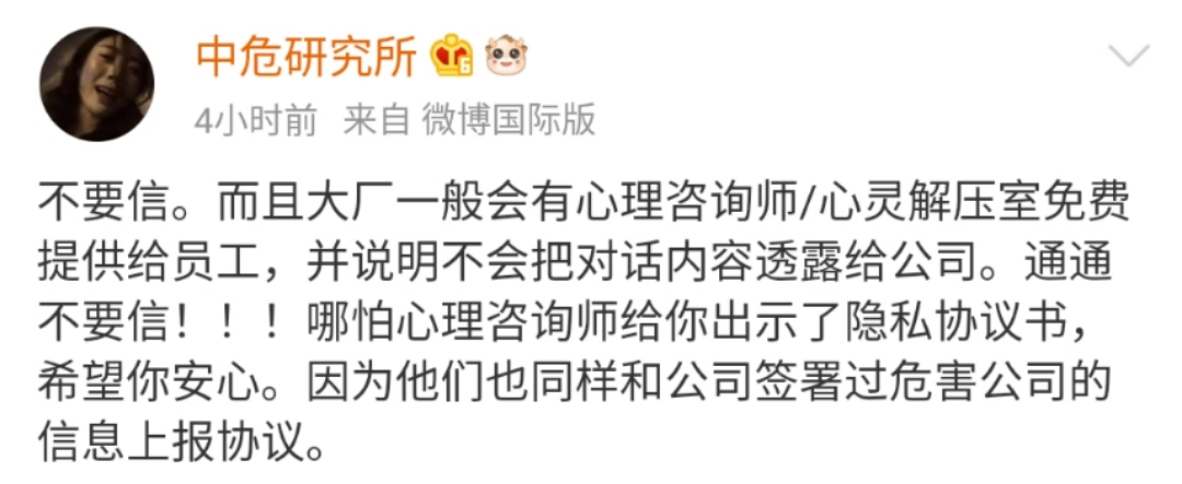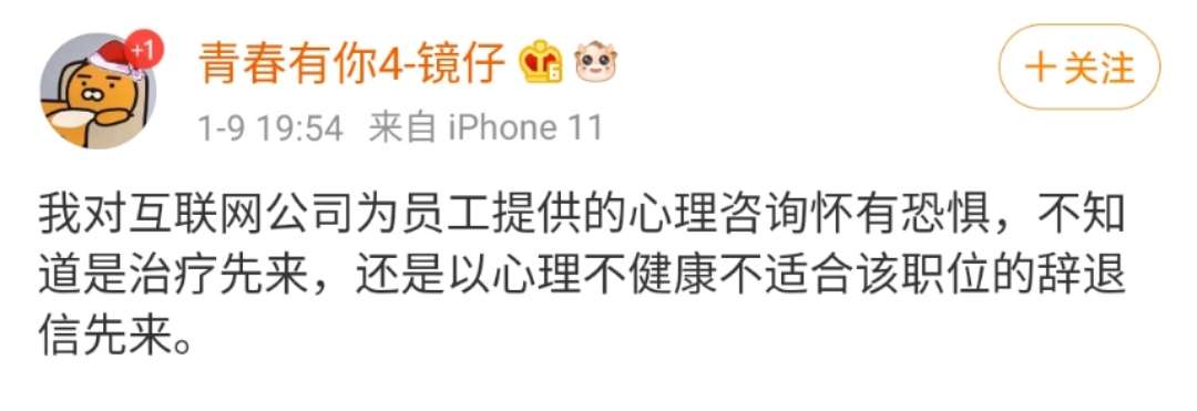 可这次新闻里,拼多多因为员工发泄情绪的过激言论就开除了他,大家自然开始怀疑是不是实际进行心理咨询时、也不能表现出对公司的负能量?