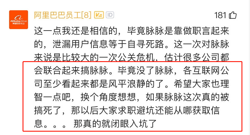 只不过这次风波过后,脉脉匿名区在使用者心中的保密程度或多或少会动摇。