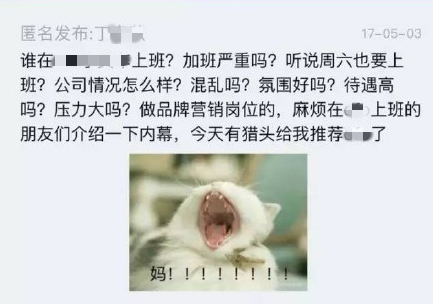 就像曾经的大学BBS里,不乏公司加不加班、内部管理制度怎么样、工资如何五险一金怎么交这些问题。