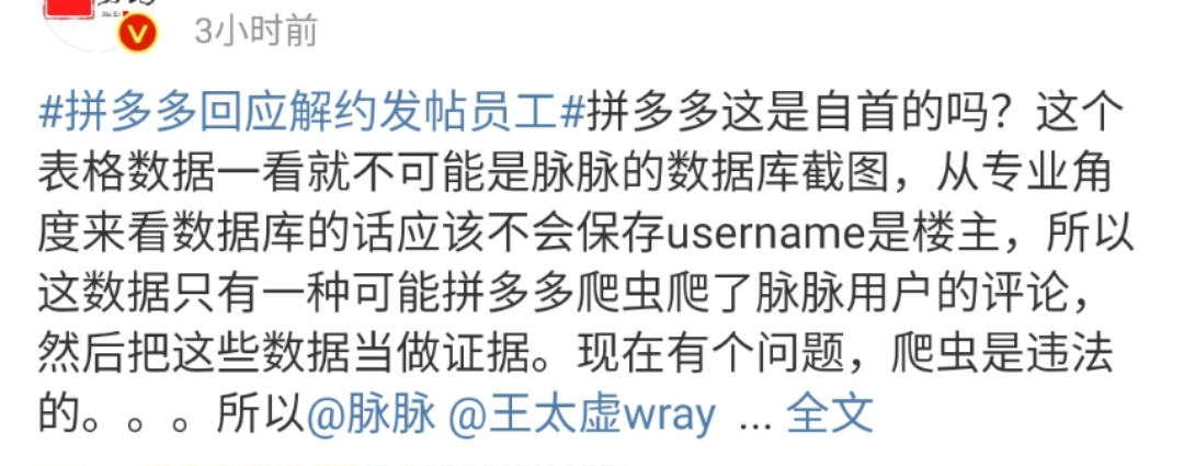 只不过,拼多多澄清中发布的这张发言表格,被不少人质疑是在利用爬虫技术调取个人隐私,涉嫌违法。