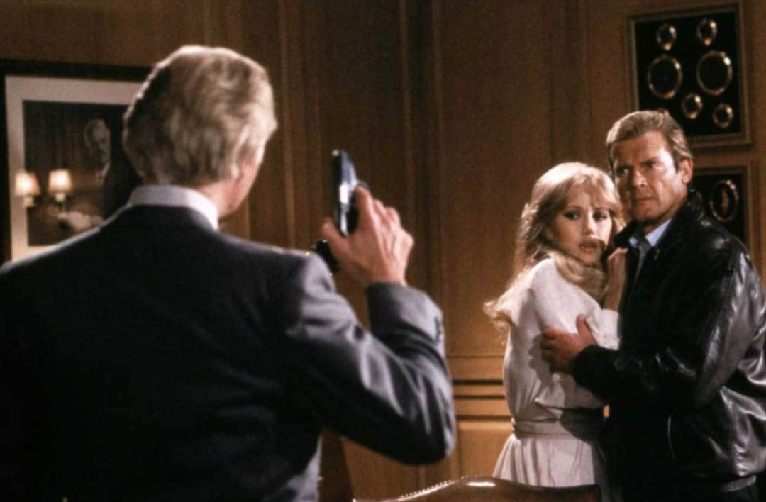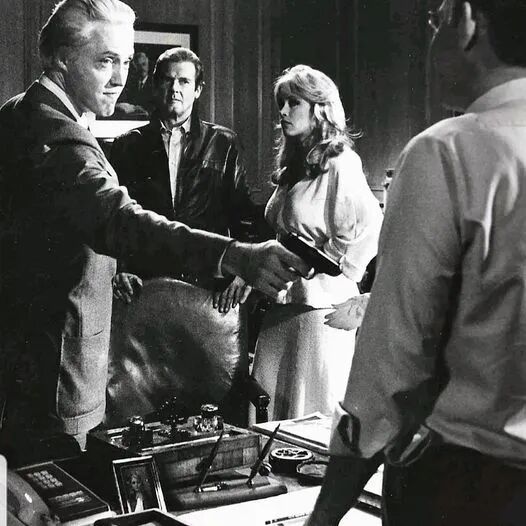 罗伯茨(Roberts)与罗杰·摩尔爵士和歌手格蕾丝·琼斯《雷霆杀机》剧照