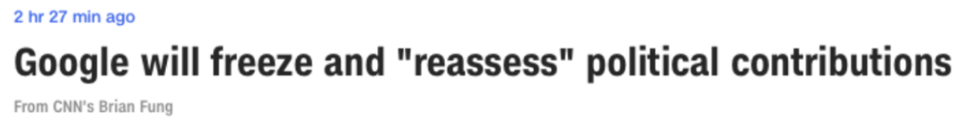 自从各大社交媒体平台封禁特朗普之后,Facebook不仅封禁了特朗普的账号,也屏蔽了“窃取选举结果”这一词条。与此同时,谷歌、微软和手机运营商AT&T等公司纷纷停止了相关的政治捐款或请愿活动。
