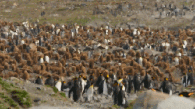 许多企鹅在遍地横尸中徘徊不前,像在哀悼亲人,又像是迷失了方向……
