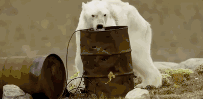 饿急的北极熊会饥不择食,在垃圾桶里翻找“食物”;
