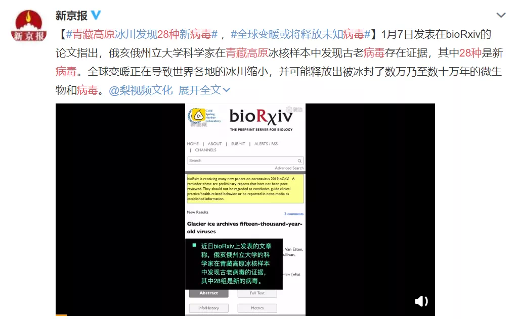 科学家在青藏高原发现了33种不同病毒的遗传信息,其中有28种是新病毒。