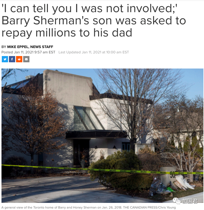 近日,受害者儿子在接受《多伦多星报》(Toronto Star)采访时谈论自己父母去世的日子,声称自己没有涉案。