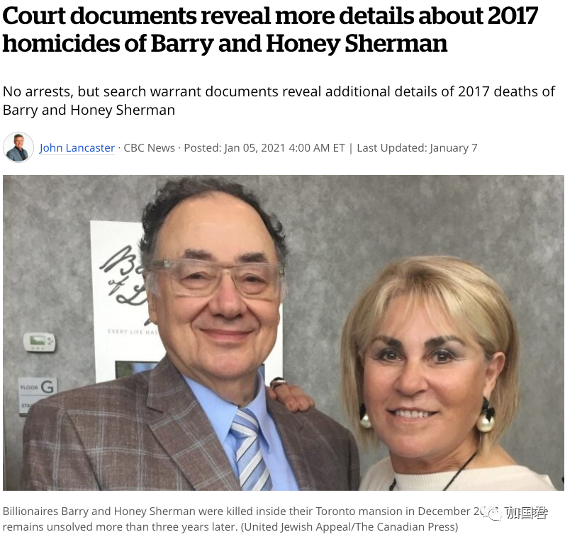 加拿大排名15位富豪、身家高达50亿加元的药厂老板谢尔曼夫妇2017年12月15日被发现伏尸在多伦多家中室内泳池旁,据称死前还受到折磨。