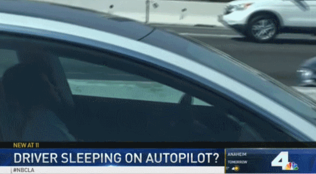 此前就有目击者拍到,在马萨诸塞州的90号高速公路上,一辆Tesla Model X以约60英里左右的时速自动巡航,车上的司机和副驾两人都歪头呼呼大睡,完全交由汽车由自动驾驶。