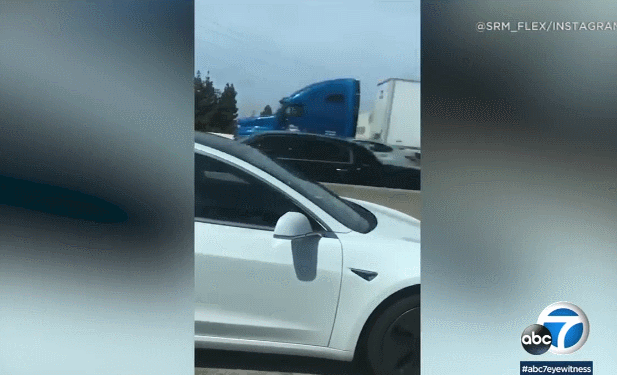 2019年6月,洛杉矶的405号高速上,又有司机在特斯拉里睡着了,路人发现后被吓到打911报警。