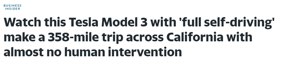车主表示,自己除了在Kettleman City 给车充电,整个过程他没有参与任何加速、制动等人为的驾驶,全靠特斯拉自己开自己。