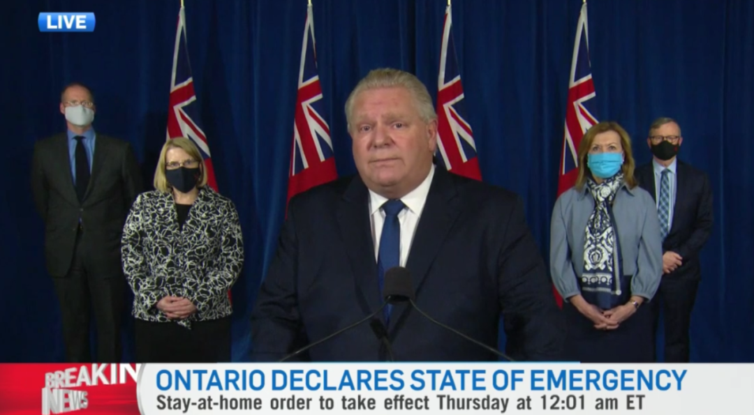 福特要求安省人民除非必需(看病、买菜或一线工作)外出,其余时间一律呆在家,安省执法人员将对不遵守规则的居民和企业处以罚款甚至判刑。