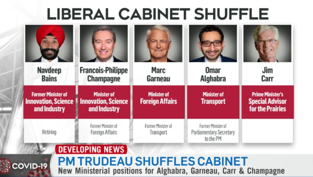 另外,2019年大选后因确诊多发性骨髓瘤而不再担任内阁职位的Jim Carr,如今病愈此次重返内阁,但暂无部长职位。