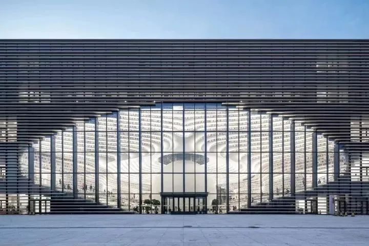 滨海图书馆有“滨海之眼”之称,该图书馆最大的特点是其内部的球形多功能厅。这个球形多功能厅外部建成了一个穹幕影院,40万个LED 灯珠镶嵌在全穿孔铝板上,大球的外部可以播放电影。