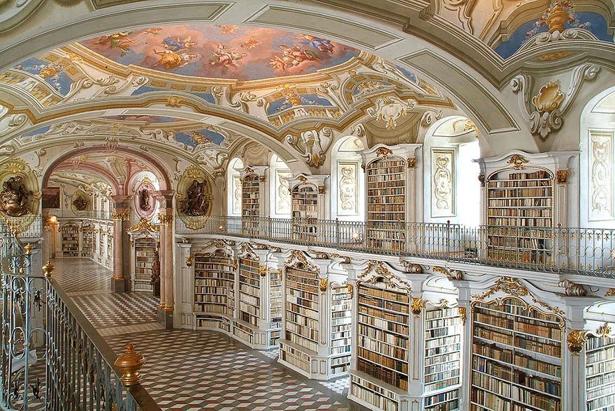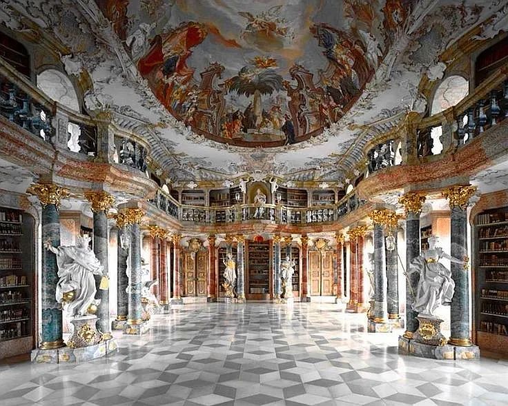 是世界上最大的修道院图书馆,主厅建于1776年,壁画表现的是从人类知识到领悟神旨的不同阶段。