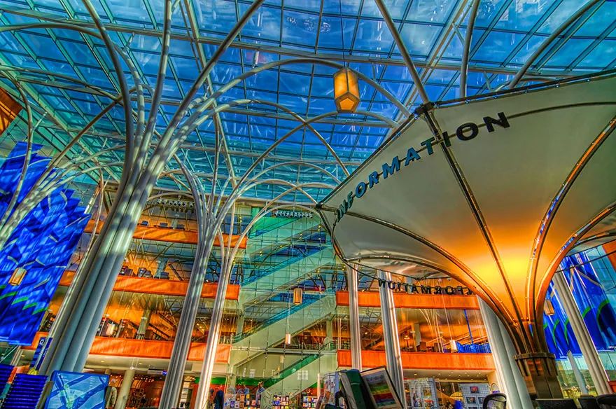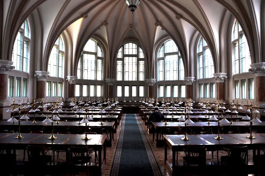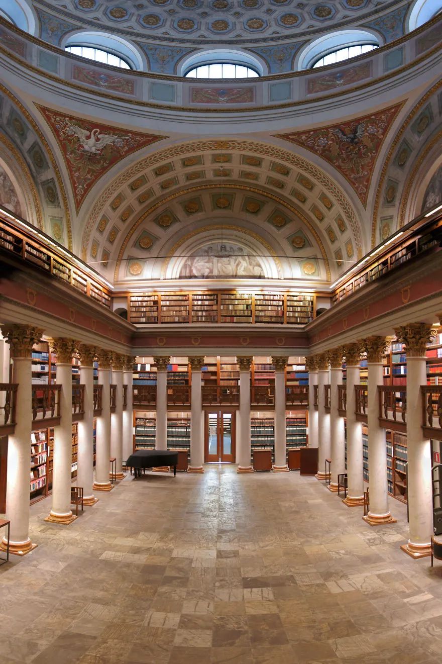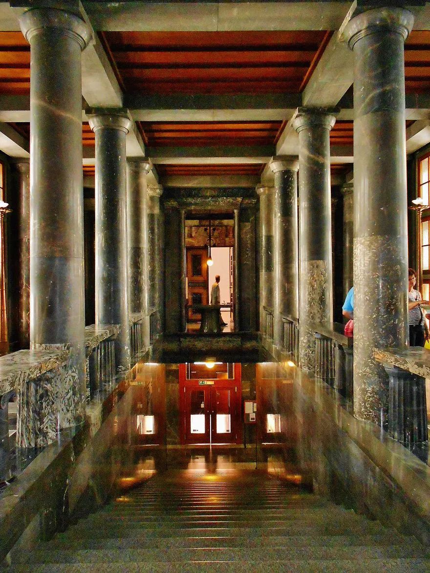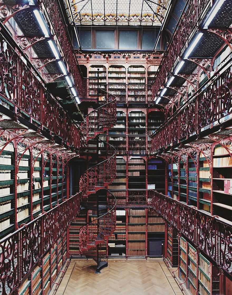 海牙老图书馆坐落于荷兰海牙的议会宫里。铁铸的回旋楼梯和栏杆上涂满了东方年味的大红色,搭配挑高的西式中庭设计,即使不看书,坐在里面也是一种享受。