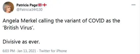 “默克尔称这种新冠变种为‘英国病毒’。
