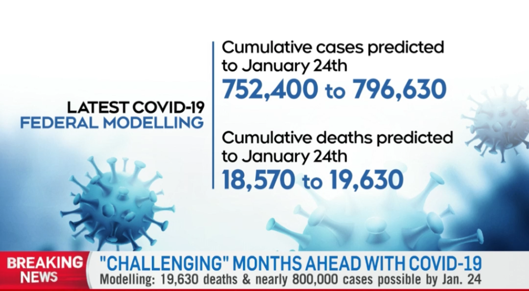 1月15日早上,联邦政府公布了新的疫情模型,该模型预测截止1月24日,全国的新冠感染者达到796,630例,死亡19,630例。