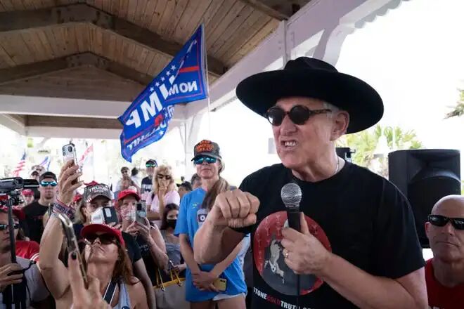 2020年11月,斯通在一场“停止窃取选举”的集会中向特朗普支持者们讲话