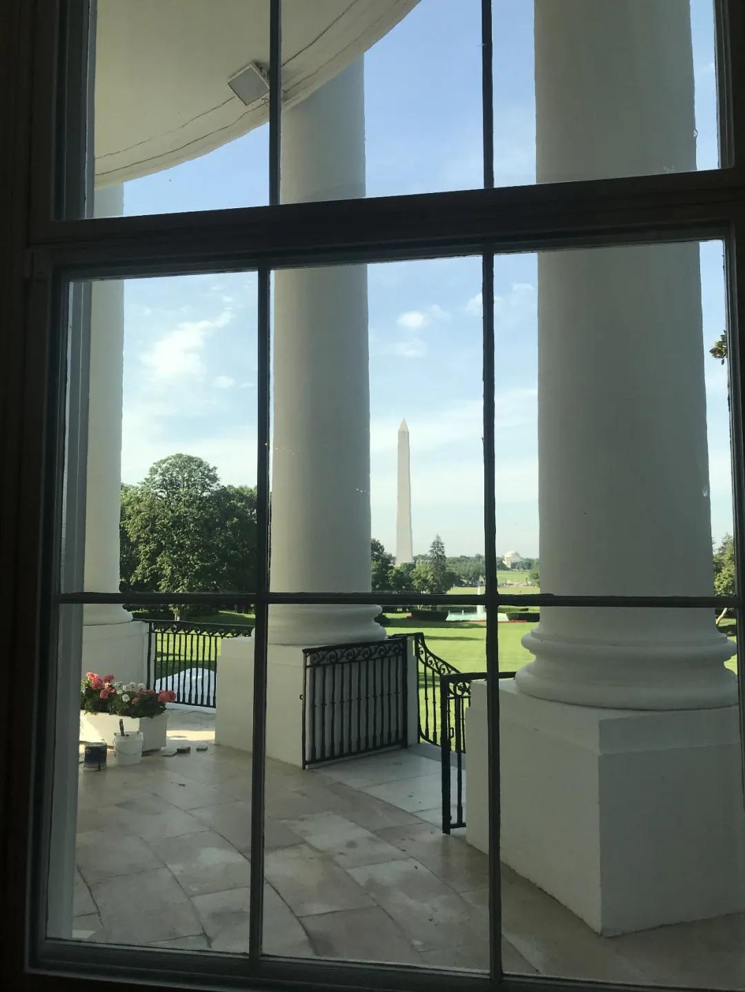 作者萝贝贝摄:从白宫椭圆形办公室楼下看方尖碑