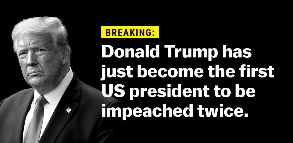 1月13日,在国会冲击事件发生的一周后,众议院正式以煽动暴力、攻击政府的罪名发起对川普的弹劾。投票结果是232:197,川普正式成为了美国历史上唯一一位被弹劾了两次的总统。