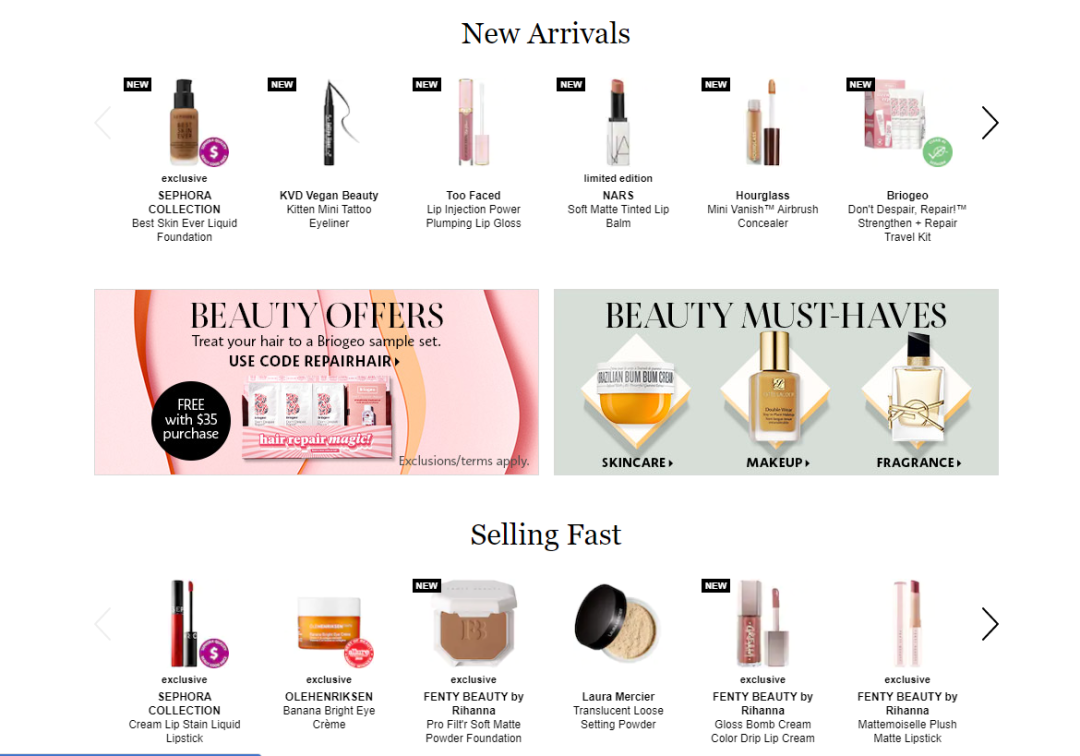 排名第四是美妆护肤零售商Sephora,网店比线下店商品还全,发货送货很快。