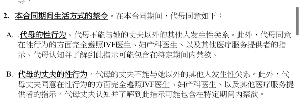 比如代孕母亲不能吸毒、抽烟、喝酒