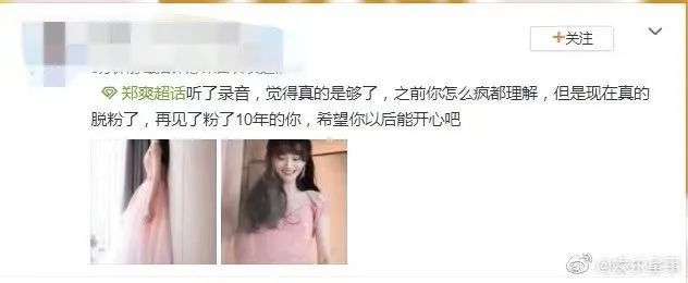 无论是真是假,到发稿前为止郑爽方面还没有官方回应该事件,有郑爽的十年粉丝心碎表示脱粉了。