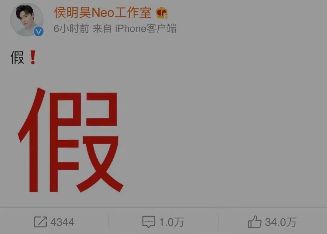 结果侯明昊工作室火速甩来一份声明,趁事件被发酵起来前把不明真相的吃瓜群众挡在了门外: