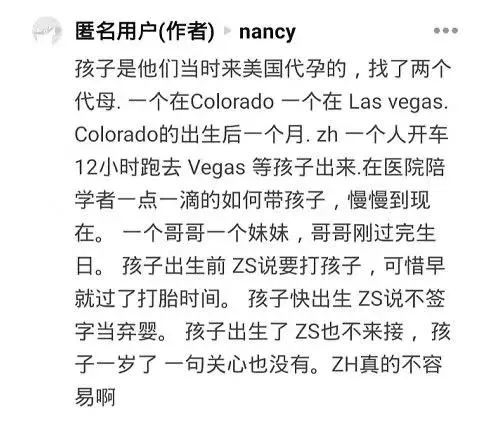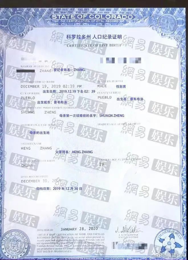 搜狐娱乐随后发文称联络了张恒的朋友核实,朋友提供了张恒两个孩子的出生证明,而在孩子的出生证明上可以看到他们分别出生在美国两个州,且相隔时间只有1个月,母亲的名字居然是SHUANG ZHENG(郑爽?!)。
