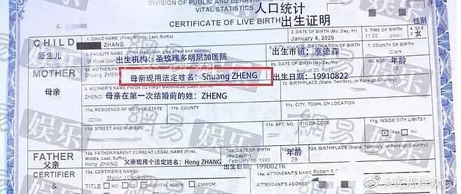 据张恒朋友提供的两份文件,一份《内华达州人口记录 出生证明》显示: