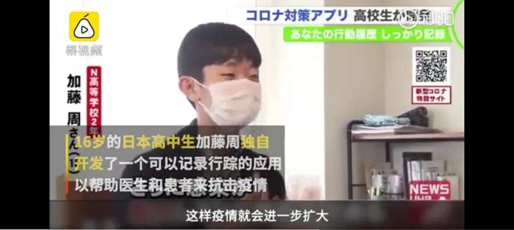 随着国家疫情的发展,检测的方法和防疫的手段也在不断的加强,这种情况下,日本一位高二的少年挺身而出,借用人工智能编程,制作了一款用于防疫的追踪行踪APP,希望可以帮助早日战胜疫情,人小志气高,这就是科技的力量,这就是未来的希望。