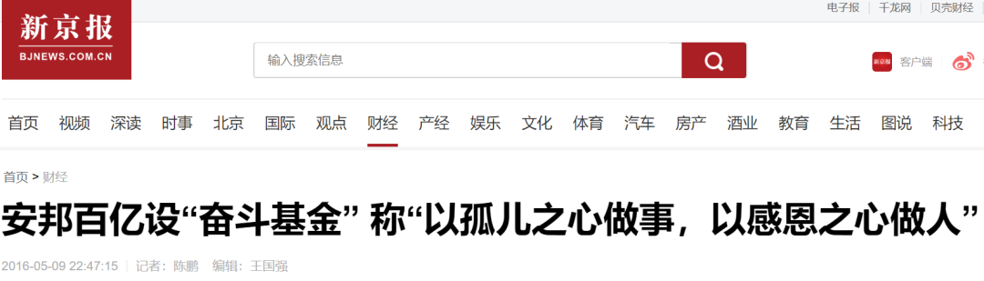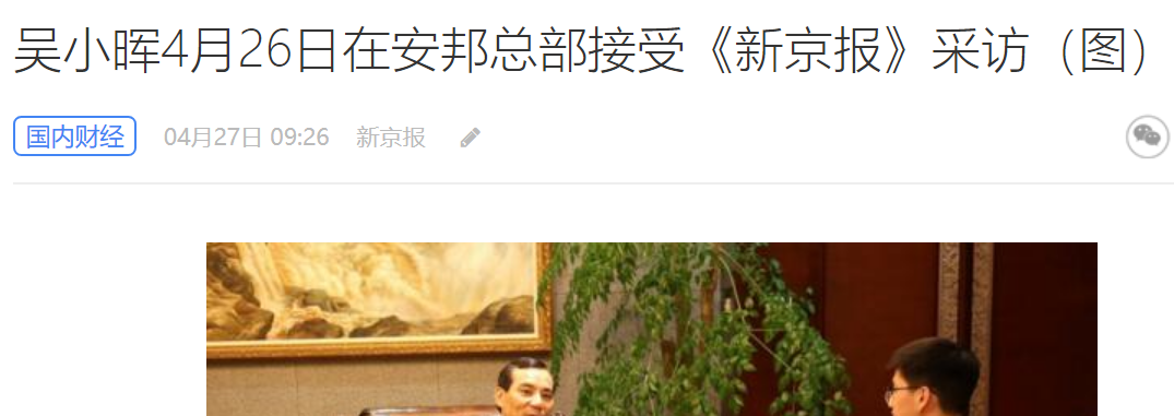 2017年4月,安邦集团董事长吴先生负面消息缠身,随后《新京报》以近乎公关式报道为吴和安邦集团“洗白”。