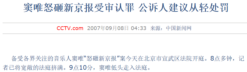 2006年,受雇于《新京报》的卓伟(日后成为了“第一狗仔”的那位),写了一篇有关窦唯的爆料,被窦唯怒砸报社,引发舆论漩涡,之后卓伟离职。