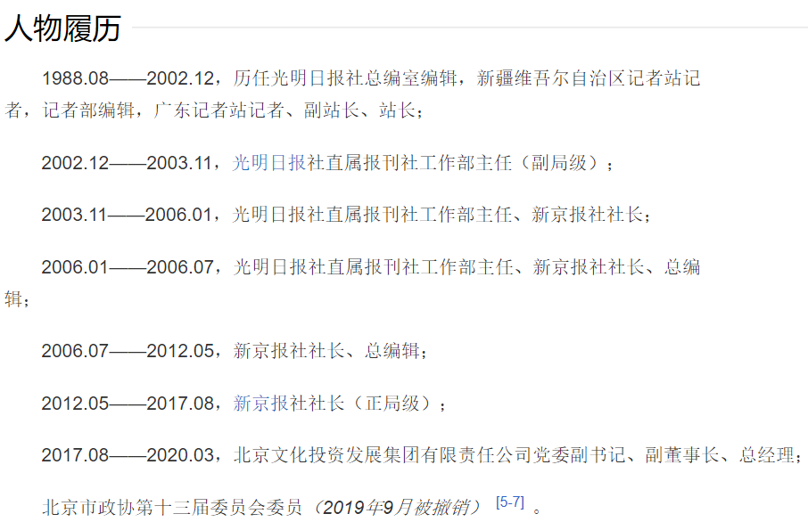 从简历可以看出,戴自更因“创办”之功,从2003年开始,一直担任新京报社长长达15年。一把手十多年未换,这在我们体制内相当少见。