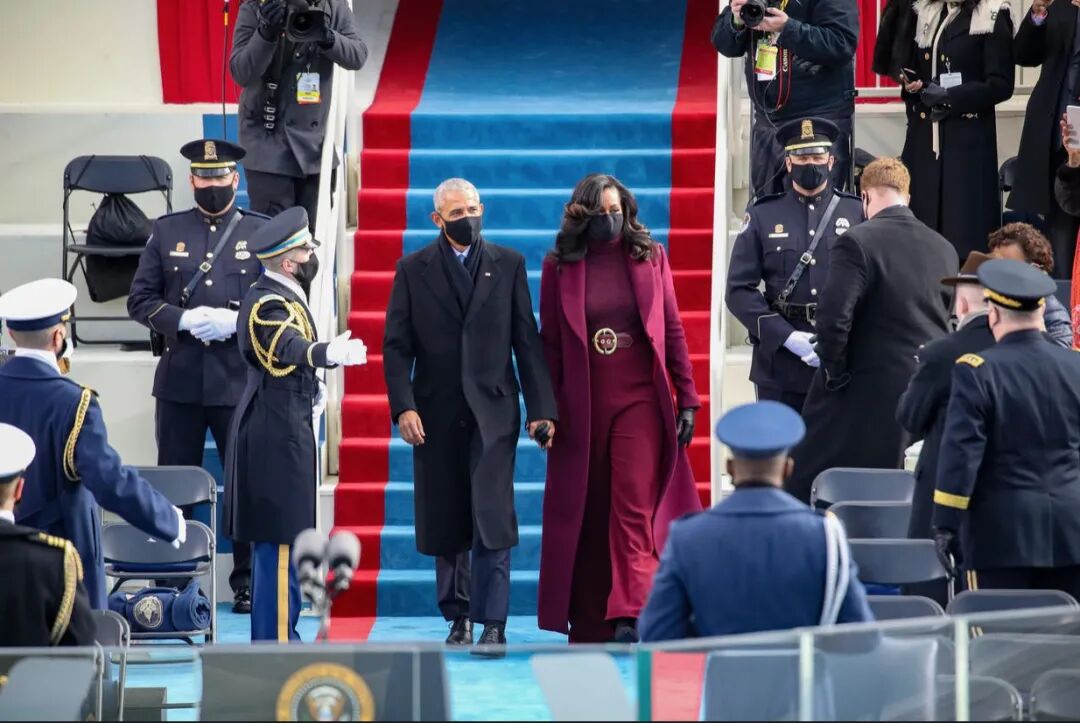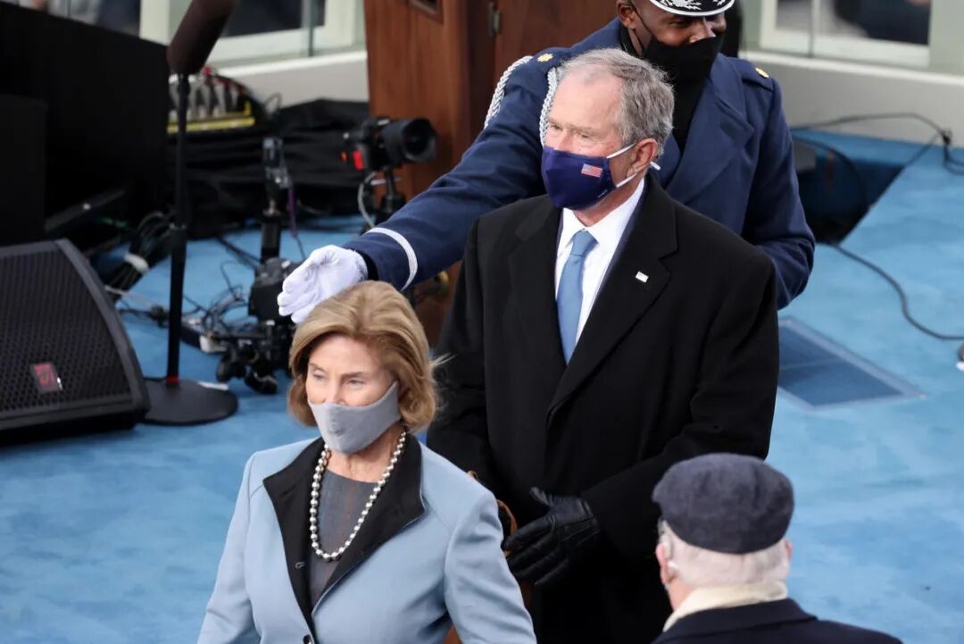 虽然没有前任的祝福,但三位元老——前总统奥巴马、小布什、克林顿等均携夫人出席仪式为拜登站台。