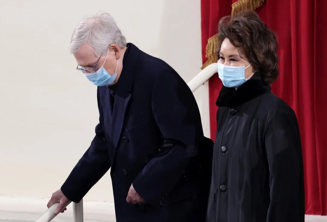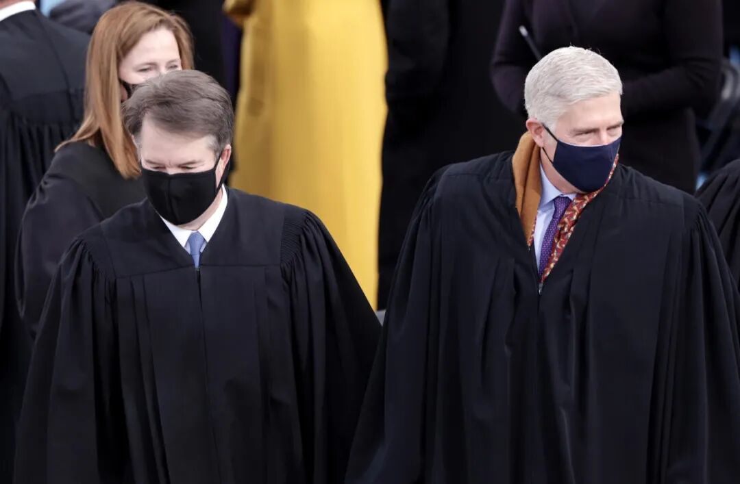 参议院共和党多数派领袖麦康奈尔也携夫人出席了仪式,甚至连特朗普一手推举进最高法院的三位大法官也出席了宣誓就职的仪式。在疫情如火如荼的当下,这样的排面也称得上重量级了。