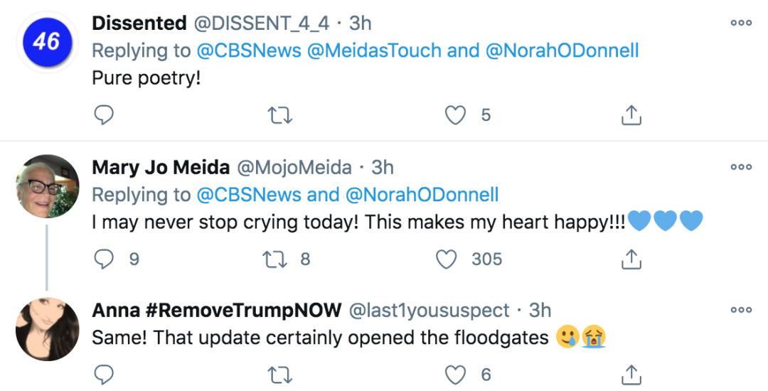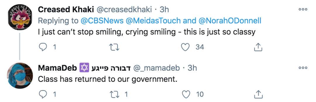 而最吸睛的莫过于副总统哈里斯的出场,当这位刷新多项纪录的女副总统,由一名在国会山暴乱当天直面众多暴徒的“英雄”警员护送着走入国会时,推特已经被网友们感动的泪水淹没了……