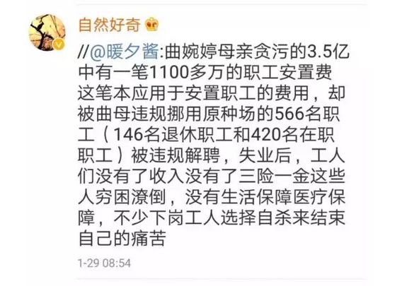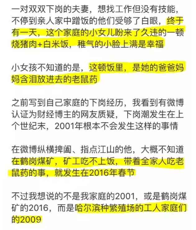 不少网友直指她吃着“人血馒头”卖惨。一段关于2009年哈尔滨原种场的下岗职工境况的描述更是激起民众的愤怒。