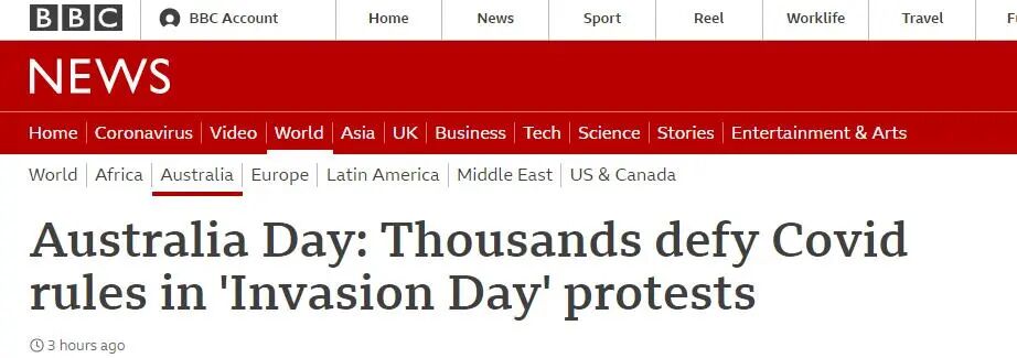 BBC:澳大利亚国庆节当天,数千人不顾疫情规定参与抗议活动