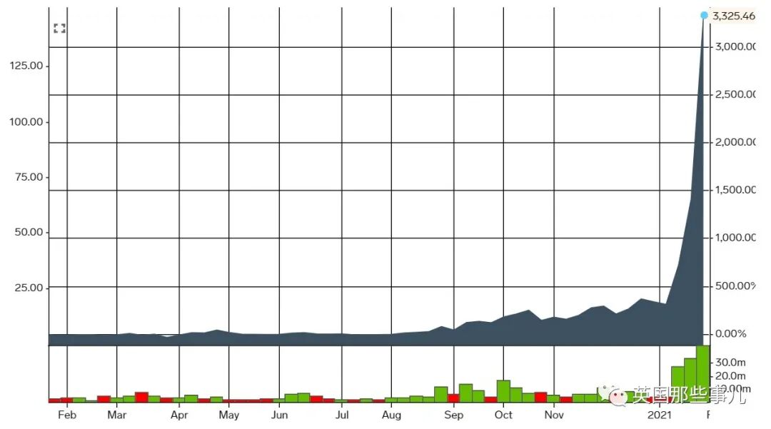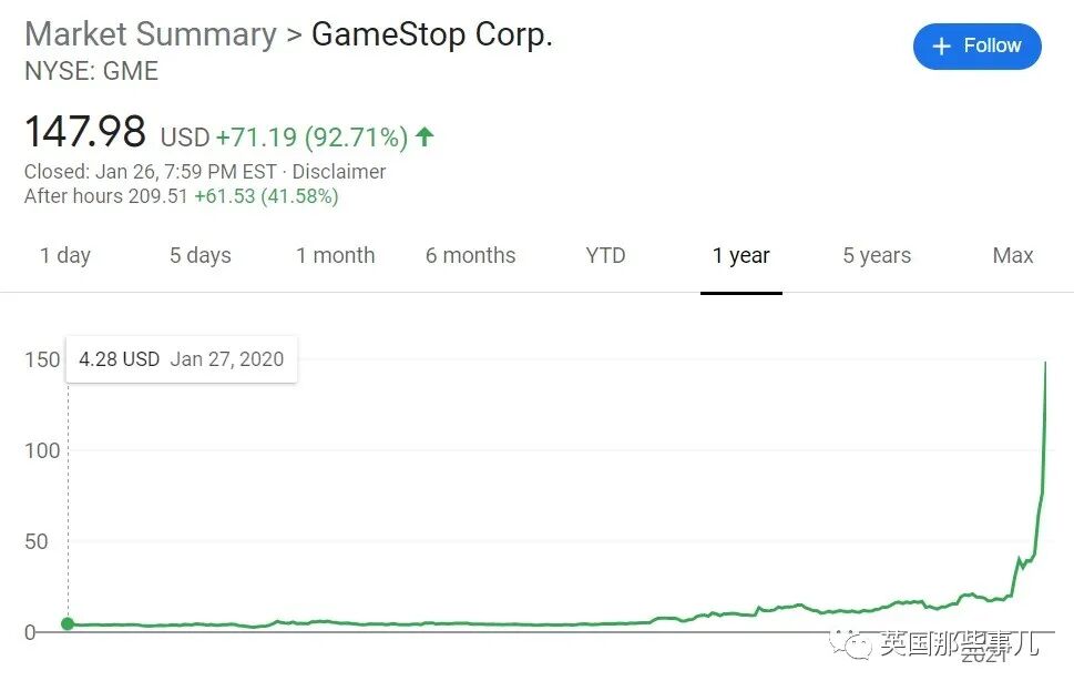 就像憋着一口气要和莱夫特作对一样,散户们疯狂买进GameStop的股票,从1月中旬开始,股价节节攀升。